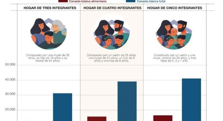 Según el INDEC – instituto nacional de estadísticas y censo- una familia tipo (dos adultos y dos menores) en diciembre necesito $ 38.960 para no ser pobre y solventar la canasta básica alimentaria o $ 15.584 para no caer en la linea de indigencia.