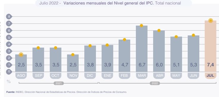 Este registro, el del 7,4%, se coinvirtió en el registro mensual más alto en lo que va del año, siendo el rubro que mayor suba tuvo del mes fue recreación y cultura, con el 13,2%, le siguen equipamiento y mantenimiento del hogar, con el 10,3%, restaurantes y hoteles, 9,8%.