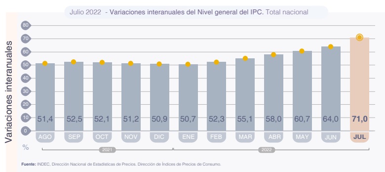 Con los datos suministrados po el Instituto Nacional de Estadísticas y Censos el acumulado en el primer semetre es igual al 46,2% mientras que el interanual llega al 71% .
