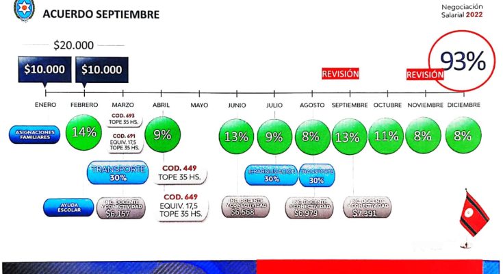 Cumplimentando con la revisión paritarias el Gobierno y los docentes cerraron un acuerdo de incremento salarial del 93%, con revisión a diciembre.