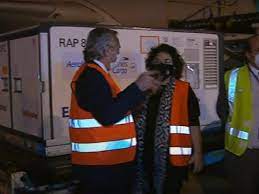 El presidente Alberto Fernández recibió este jueves a las 19.10 en el Aeropuerto Internacional de Ezeiza al vuelo 1051 de Aerolíneas Argentinas proveniente de Beijing, que trajo un millón de dosis de vacunas Sinopharm.