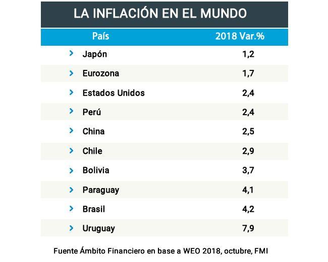 En el plano regional, excluyendo Venezuela y Haití (13%), todas las naciones tienen tasas de inflación menores al 10%. Entre los vecinos de la Argentina, la mayor variación corresponde a Uruguay (7,9%) y la menor a Chile (2,9%).