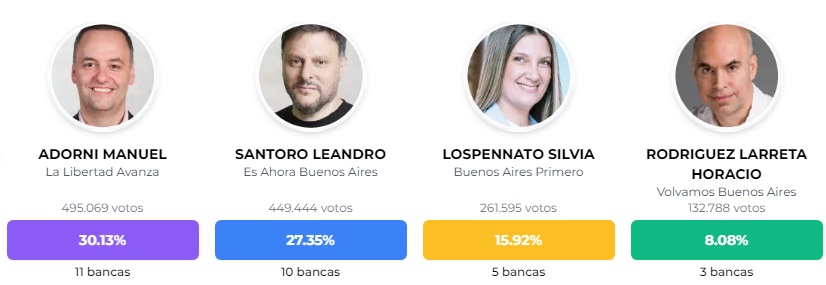La Libertad Avanza gana con Adorni, Santoro queda segundo, el PRO queda tercero y hay una baja participación en la Ciudad.
