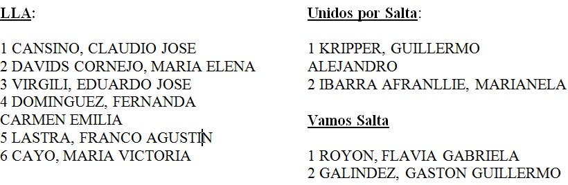 En Diputados, el triunfo también es para los libertarios, obtendrán 6 bancas. Los candidatos del gobernador se dividen las bancas entre Unidos por Salta y Vamos Salta con 2 bancas cada uno.