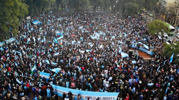 Frente al megaoperativo de Seguridad que el Gobierno montó en San José 1111, la concentración pasó a realizarse en el auditorio del parque. CFK reapareció a través de un audio en el que criticó a Patricia Bullrich y las políticas de Javier Milei.