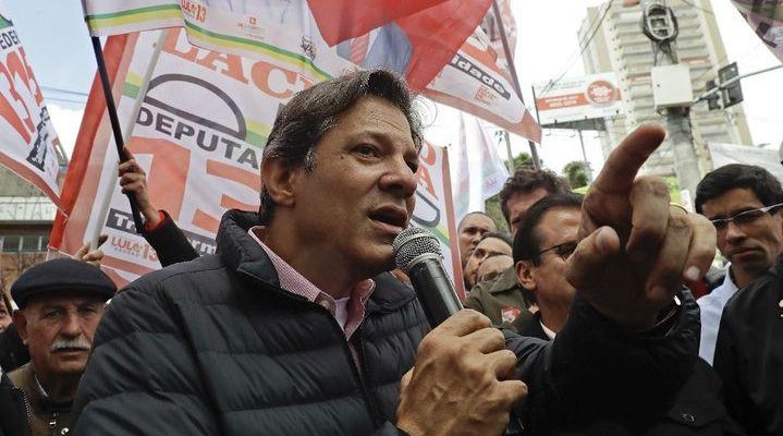 Haddad subió de 9% a 13% para Datafolha, en la primera encuesta tras su oficialización el pasado 11 como sustituto del encarcelado expresidente Luiz Inácio Lula da Silva, que era el gran favorito con más del 40% hasta que su candidatura fue invalidada debido a su situación judicial.