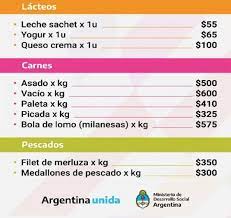 Los 28 productos que formarán parte de la Canasta Ahorro son: avena ($45), lentejas ($85), lentejón ($100), harina de maíz ($30), harina de mandioca ($40), harina de garbanzo ($50), poroto colorado ($70), aceite ($120 900 ml), arroz ($45 el kilo), harina de trigo 000 ($38 el kilo), leche en polvo ($210 400gr), azúcar ($48 el kilo), yerba ($130 medio kilo), puré de tomate ($40), cacao ($250 el kilo), miel ($250), toallitas femeninas ($60 cada 16 unidades), lavandina ($120 cinco litros), leche en sachet ($55), yogur ($65), queso crema ($100), asado ($500), vacío ($600), paleta ($410), picada ($325), bola de lomo ($575), filet de merluza ($350) y medallones de pescado ($300)
