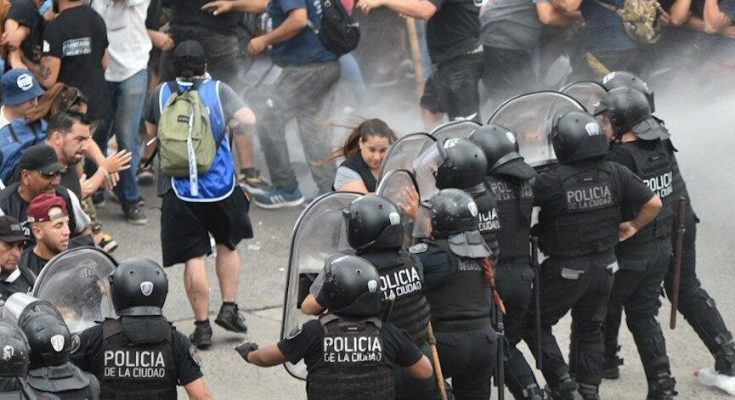 Bullrich mandó a reprimir, en el marco de una masiva movilización, la ministra de Seguridad desplegó un enorme operativo represivo. El gas pimienta, los perros y el camión hidrante.