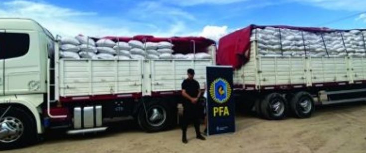 La División Federal de la Unidad Operativa de Salvador Mazza decomisó 45 toneladas de soja embolsada, cuando el vehículo que la transportaba intentaba cruzar ilegalmente al Estado Plurinacional de Bolivia.