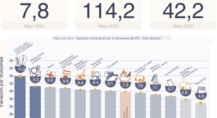 El IPC- Índice de precios al consumidor- fué en mayo del 7,8%, lleva acumulado en lo que va del año un 42,2%, la interanual alcanzó al 114,2%.