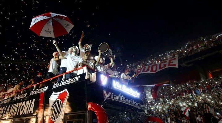 Fue una fiesta total, River Plate ganador de la Copa Libertadores quien le gano a su eterno rival Boca Juniors, mereció un festejo grande como el que vivió el plantel de Marcelo Gallardo desde que arribó a suelo argentino en Ezeiza y otra multitud siguió al micro desde el aeropuerto internacional hasta el Monumental, punto central de todos los festejos.