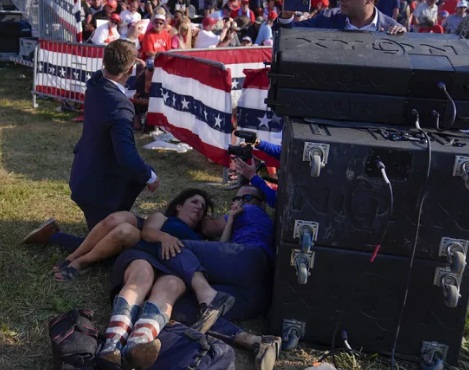 EE.UU. Donald Trump en un intento fallido de asesinato en un mitin en Pensilvania, un espectador muere, dos son heridos de gravedad y Trump herido también en la oreja derecha.