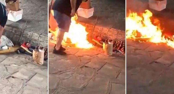 Sucedió bajo un puente de la avenida General Paz, un hombre baja con un bidón en la mano, rocía con combustible a dos indigentes que duermen bajo unas mantas y con un encendedor prende el fuego. Luego, corre hacia el auto y, entre insultos y carcajadas, huye junto a su cómplice. Las víctimas se deshacen de las telas incendiadas. La escena quedó grabada en un móvil y el vídeo pasó desapercibido hasta que alguien decidió subirlo a las redes sociales, donde se viralizó con rapidez.