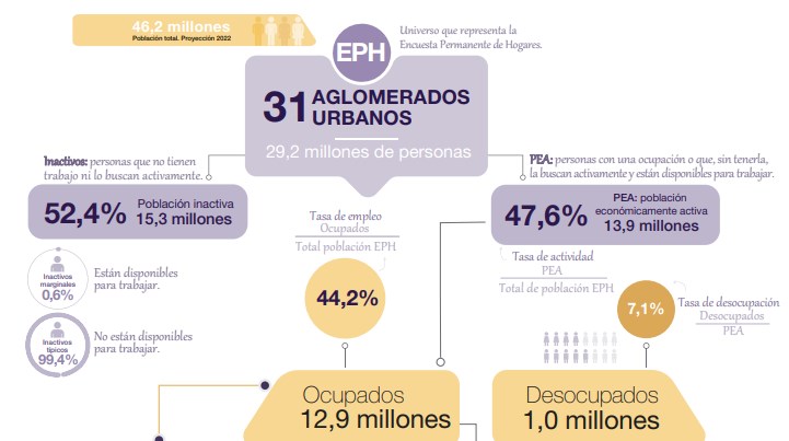 La tasa de desocupación en el total urbano de la Argentina bajó de 7,1% a 6,7% en tercer trimestre de 2022 respecto a igual período de 2021, según la encuesta de hogares, informada por el Instituto Nacional de Estadística y Censos (INDEC).