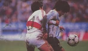 “Los que peinan canas recordaran el mundial de 86′ donde obtuvimos nuestro segundo galardón mundialista, pero en la retina de los futboleros la marcación de Luis Reyna (Peruano) a nuestro “Diego Armando Maradona” en esas eliminatorias no nos olvidaremos jamás, una foto vale mas que mil palabras”.
