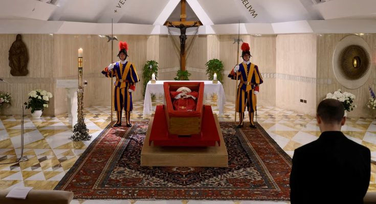 El cuerpo del papa Francisco descansa en la Basílica de San Pedro luego de ser trasladado desde la capilla de la residencia Casa Santa Marta, donde residió durante su papado, y permanecerá allí hasta su funeral que se llevará a cabo el próximo sábado.