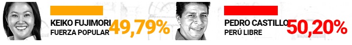Con el 99,8% de las mesas escrutadas Pedro Castillo tiene ventaja sobre Keiko Fuijimori, quién sigue denunciando fraude