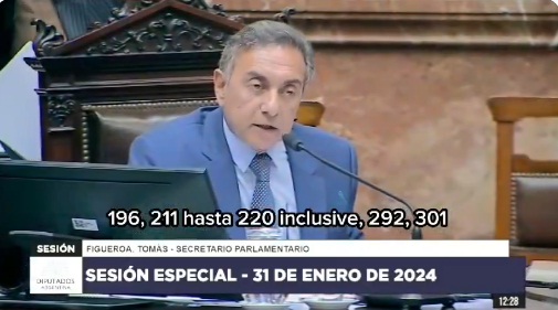 El secretario Parlamentario, Tomás Figueroa, detalló los artículos que suprimirían del dictamen de mayoría, a los efectos de ordenar la futura votación en particular.