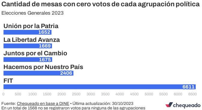 En más de 7 mil mesas al menos una fuerza política no obtuvo votos, y que los tres principales candidatos terminaron con 0 votos en casi 1.700 mesas cada uno.