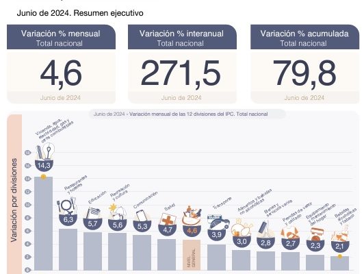 Inflación de junio 4,6% en junio, acumula un 79,8% en el primer semestre