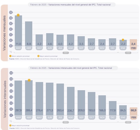 En los primeros dos meses de 2025, los precios subieron 4,7%, según reportó el Instituto Nacional de Estadística y Censos (INDEC), en el habitual informe Índice de Precios al Consumidor (IPC).