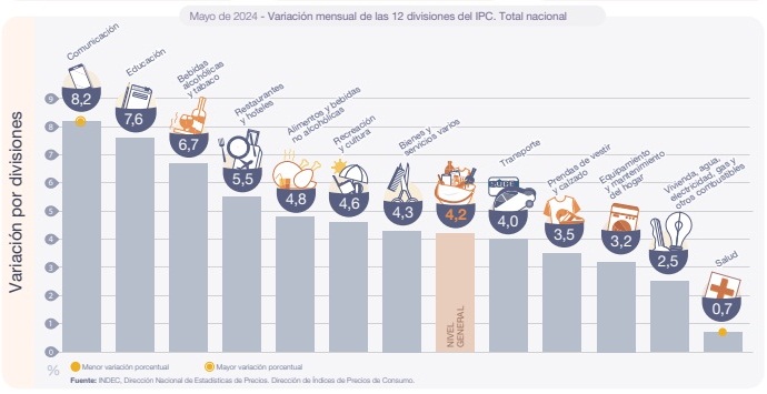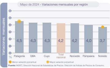 La inflación de mayo fue del 4,2%, en lo que va del año acumula un alza del 71,9% y la interanual se ubicó en el 276,4%, según informó esta jornada el INDEC.