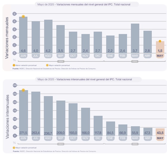 La inflación de mayo perforó el umbral del 2%, al ubicarse en el 1,5% informó el Instituto Nacional de Estadística y Censos (INDEC). Se trató del dato mensual más bajo desde mayo de 2020, en plena pandemia.