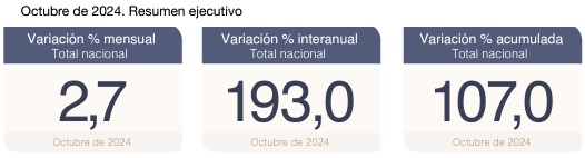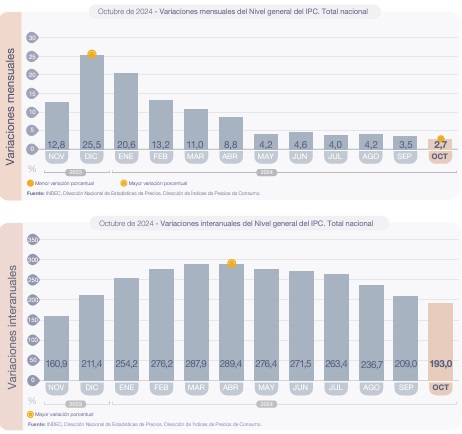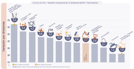 La inflación de octubre, según informó este martes el Instituto Nacional de Estadística y Censos (INDEC), fue de 2,7%.