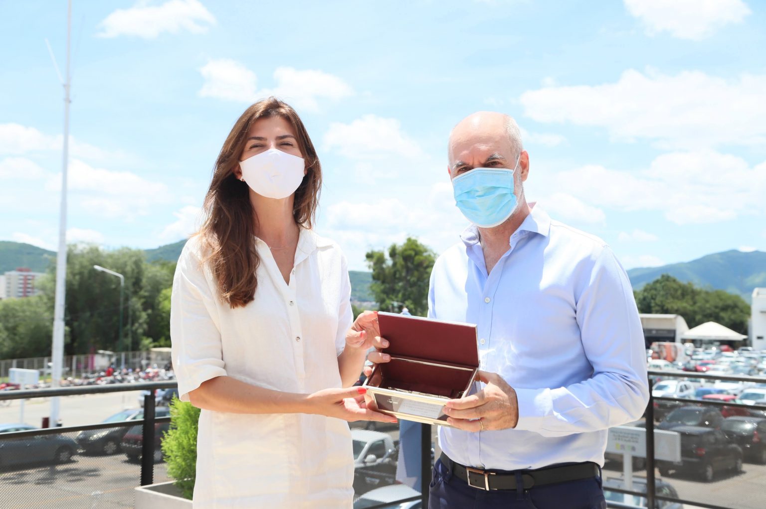 La intendenta de Salta, Bettina Romero, recibió al jefe de Gobierno de la ciudad de Buenos Aires, Horacio Rodríguez Larreta, y le hizo entrega simbólica de la llave de la ciudad en agradecimiento por su visita.
