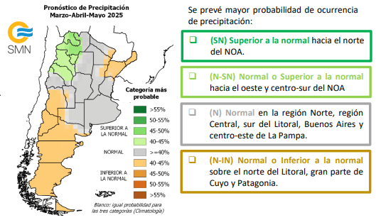 El Servicio Meteorológico Nacional actualizó su pronóstico climático trimestral, con la información correspondiente al período marzo-abril-mayo.
