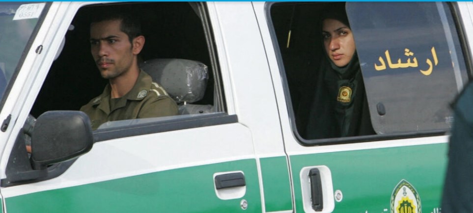 En Irán, la policía de la moral, un cuerpo que supervisa que los ciudadanos cumplan con las estrictas leyes de vestuario y moralidad.