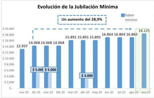 En el primer incremento fue del 5,5% y este nuevo del 7,5% para septiembre y que acumulado en lo que va del año alcanza el 28,9 % para las jubilaciones y pensiones más bajas.