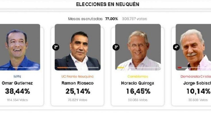 Gutiérrez, además de los votos del MPN, obtuvo el apoyo de las cuatro listas colectoras (Unión Popular, Frente Nuevo Neuquén, Frente Integrador Neuquino y Siempre) para estirar su ventaja frente a Rioseco y Quiroga. A partir del cuarto lugar se ubican Jorge Sobisch (Demócrata Cristiano), Raúl Godoy (FIT) y Mercedes Lamarca (libres del sur).