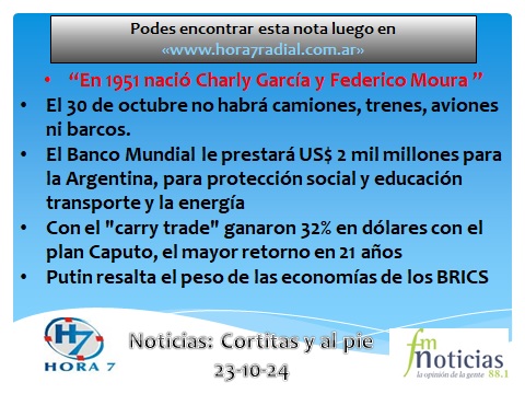 Noticias del 23 de Octubre. Feliz cumple Charly García!!!