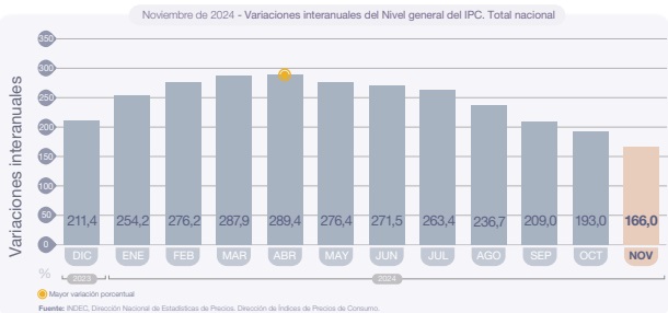 En el anteúltimo mes del año la inflación fue del 2,4%, cuando el mercado esperaba 2,8%. El ministro de Economía, Luis Caputo, desde su cuenta en X, hizo un posteo en alusión al dato de noviembre: “2,4% inflación minorista noviembre. La más baja desde julio 2020. Alimentos, 0,9%, Bienes,1,6%, Canasta básica alimentaria, 1,1%, Canasta básica total, 1,5%. El proceso de desinflación continúa. Cada vez más cerca de bajar el crawling peg al 1%”.