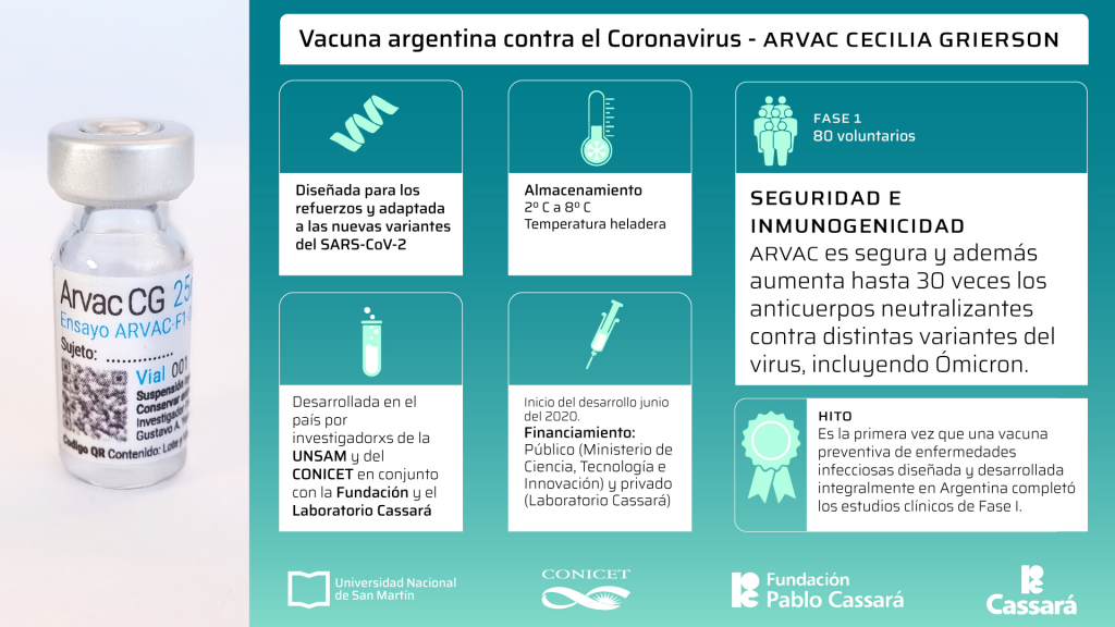 Durante el transcurso de los ensayos las autoridades indicaron que la vacuna “Arvac-Cecilia Grierson” está fabricada en base a la tecnología de proteínas recombinantes que permite adaptarse a la formación de futuras y nuevas variantes.