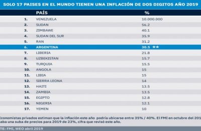 Argentina sexto en inflación a nivel mundial