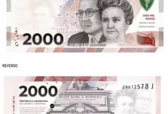 El Directorio del BCRA aprobó la emisión de un nuevo billete, será de $ 2000 con Carrillo y Grierson en el anverso y en el reverso estará el Instituto Malbrán.