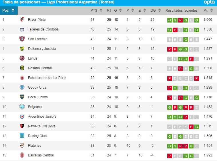 A dos fechas del final la tabla quedó de la siguiente manera