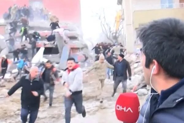 Un Periodista de la agencia DHA, Agencia de Noticias Demirören, transmitía en vivo cuando la tierra volvió a temblar en Turquía, “Un terremoto está ocurriendo en este momento (…) ¿Estamos en vivo? Se produjo un terremoto. Sí…”, narró el presentador que estaba en una zona donde ya habían ocurrido derrumbes en Kahramanmarash.
