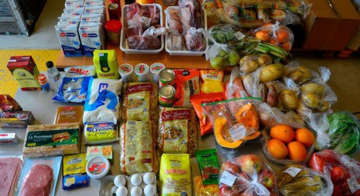 “La canasta hoy consta con 250 gramos de queso criolla, 200 gramos de manteca, 2 docenas de tapas de empanadas, un par d tapas de pascualinas, dos tipos de condimentos cada uno de 50 gramos, 6 huevos, 250 gramos de garbanzo y 250 gramos de copos de maíz. Viene un bolsón de 4 a 6 kilos de verduras y frutas de estación; todo ese bolsón a $600 pesos. Esta edición, que es la décima, estamos intentando de tener una fruta tipo mandarina o naranja porque creemos que es importante por sus características, por el frío y las enfermedades”, informó.